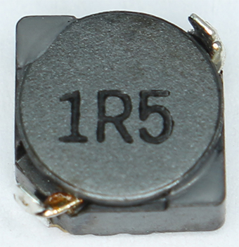 文字符號法是由數字和文字符號組成,按照一定的規律把電感的標稱值和偏差值標示在電感上面。這種表示方通常用在一些小功率電感上面,單位一般是nH 或pH分別用“R”和“n”表示小數點。如下圖是某電感用文字符號法表示的,這里1R5則表示電感量為1.5 μH。